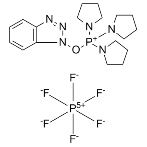 Гексафторфосфат 1H-бензотриазол-1-илокситрипирролидинофосфония (PyBOP) (CAS: 128625-52-5) является одним из наиболее удобных реагентов для связывания пептидов, используемых в твердофазном синтезе пептидов, без канцерогенных побочных продуктов. Он также используется в качестве заменителя реагента (бензотриазол - 1 - илокси) трис (диметиламино) фосфоний гексафторфосфат (BOP). По реакционной способности он аналогичен BOP, но его побочный продукт не обладает высокой канцерогенностью. PyBOP особенно подходит для твердофазного синтеза пептидов, позволяет избежать рацемизации. В отличие от реагентов сочетания на основе урония, PyBOP не образует гуанидинированных побочных продуктов при использовании в избытке. Это делает его полезным в реакциях конденсации фрагментов и циклизации голова - хвост -