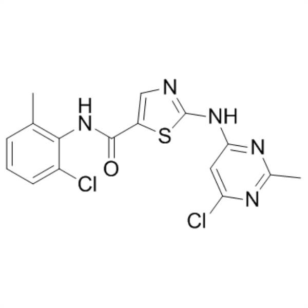N-(2-Хлор-6-Метилфенил)-2-[(6-Хлор-2-Метил-4-Пиримидинил)амино]-5-Тиазолкарбоксамид (CAS: 302964-08-5), промежуточное соединение дазатиниба (CAS: 302962-49-8) и моногидрата дазатиниба (CAS: 863127-77-9). Дазатиниб применяется на всех стадиях хронического миелогенного лейкоза, подвергавшихся лечению, включая резистентные или непереносимые иматинибу мезилат/гливек (хроническая фаза, ускоренная фаза, фаза лимфоидно-клеточного бласта и миелолейкоз). Стадия клеточного бласта) взрослые пациенты. В то же время FDA также одобрило дазатиниб для лечения взрослых пациентов с положительной филадельфийской хромосомой и острым лимфобластным лейкозом, которые резистентны или непереносимы к другим методам лечения с помощью обычных процедур.