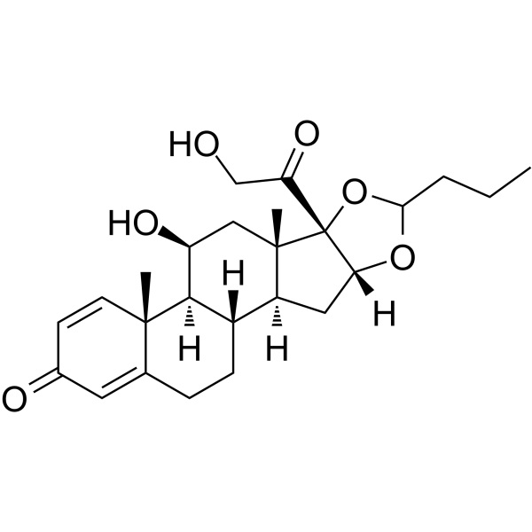 Будесонид (CAS: 51333-22-3) (торговая марка: Пульмикорт) представляет собой синтетический кортикостероидный препарат. Будесонид показан для поддерживающего и профилактического лечения астмы. Он также используется для долгосрочного лечения хронической обструктивной болезни легких (ХОБЛ). Будесонид также полезен для лечения воспалительных заболеваний кишечника, включая болезнь Крона, язвенный колит и микроскопический колит, а также для лечения аллергического ринита. Будесонид проявляет сильную глюкокортикоидную активность и слабую минералокортикоидную активность in vivo. Он эффективен в ингибировании активности нескольких типов клеток и медиаторов, участвующих как в аллергическом, так и в неаллергическом-опосредованном воспалении.