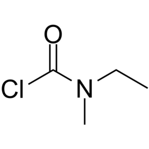N-Этил-N-Метилкарбамоилхлорид (этил(метил)карбаминхлорид) (CAS: 42252-34-6), промежуточное соединение тартрата ривастигмина (CAS: 129101-54-8). Ривастигмина Тартрат – это тартрат ривастигмина, препарата для лечения болезни Альцгеймера. Ривастигмин – производное физостигмина, впервые успешно разработанное компанией Novartis, Швейцария. Торговое название — экселон, молекула имеет структуру бензилкарбамата. Это карбаматный мозговой селективный ингибитор холинэстеразы, который может одновременно ингибировать ацетилхолинэстеразу и бутирилхолинэстеразу и способствовать холинергической нервной проводимости, задерживая деградацию ацетилхолина, высвобождаемого холинергическими нейронами. Он может улучшить когнитивную дисфункцию, опосредованную холинергическими средствами, тем самым улучшая когнитивный эффект у пациентов с болезнью Альцгеймера. Способность ривастигмина связывать белки плазмы слабая, он легко проходит через гематоэнцефалический барьер и обладает высокой степенью селективности в головном мозге. Он может не только избирательно действовать на наиболее уязвимые области коры головного мозга и гиппокампа, но и преимущественно ингибировать доминантные подтипы АХЭ в головном мозге, что может уменьшить периферические холинергические побочные эффекты, одновременно оказывая лечебные эффекты. Период полувыведения ривастигмина тартрата в организме короткий, а время действия длительное. В отличие от такрина, этот продукт оказывает более сильное ингибирующее действие на фермент G1 в гиппокампе и коре головного мозга. Его клинически используют для лечения легкой и умеренной деменции Альцгеймера, при которой подозревают болезнь Альцгеймера или болезнь Альцгеймера.