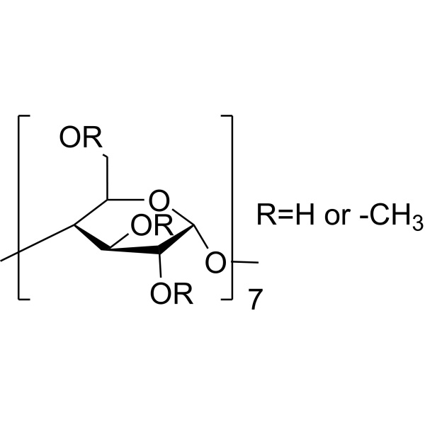 Метил-β-Циклодекстрин представляет собой случайно метилированную форму циклического олигосахарида β-Циклодекстрин. Метил-β-Циклодекстрин содержит семь единиц D-(+)-глюкопиранозы, которые содержат рандомизированные водородные или метильные группы. Метил-β-Циклодекстрин использовался для улучшения растворимости в воде различных соединений и для экстракции холестерина из липидных мембран.