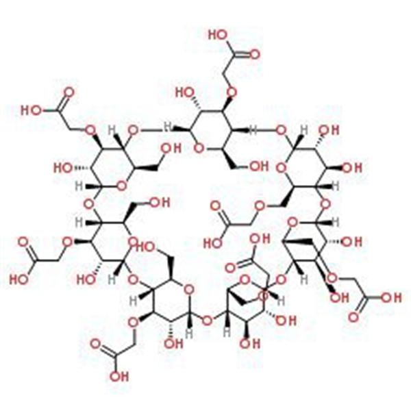Карбоксиметил-β-Циклодекстрин (CM-β-CD; CMBCD) (CAS: 218269-34-2). В растворе с pH<4 растворимость карбоксиметила-β-Циклодекстрина (CM-β-CD) низкая. Но в растворе с pH>4, в котором карбоксильная группа диссоциирует, CM-β-CD может растворяться в воде в любой концентрации. Он обладает хорошей растворимостью в кишечной среде человека: pH составляет 6-7. CM-β-CD, который имеет более низкий гемолиз, чемHP-β-CD (CAS: 128446-35-5)может использоваться в составах пролонгированного высвобождения.