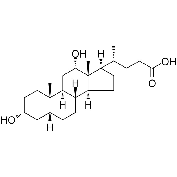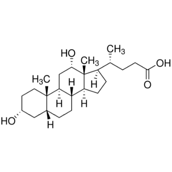 Дезоксихолевая кислота (CAS: 83-44-3) обычно конъюгирована с глицином или таурином и действует как детергент при эмульгировании жиров для их кишечной абсорбции.