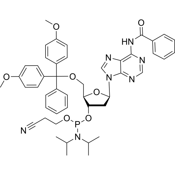 | Синонимы | ДМТ-dA(bz)амидит; dA(N-Bz) фосфорамидит; DA-CE Фосфорамидит; ДМТ-dA(Bz)-CE-Фосфорамидит; 5'-O-DMT-N6-бензоил-2'-дезоксиаденозинфосфорамидит; 5'-O-(4,4'-диметокситритил)-N6-бензоил-2'-дезоксиаденозин-3'-(2-цианоэтил-N,N-диизопропил)фосфорамидит; N-Бензоил-5'-O-(4,4'-Диметокситритил)-2'-Дезоксиаденозин-3'-(2-Цианоэтил-N,N-Диизопропил)фосфорамидит; N-Бензоил-5'-O-[бис(4-Метоксифенил)(фенил)метил]-3'-O-[(2-Цианоэтокси)(диизопропиламино)фосфино]-2'-Дезоксиаденозин |