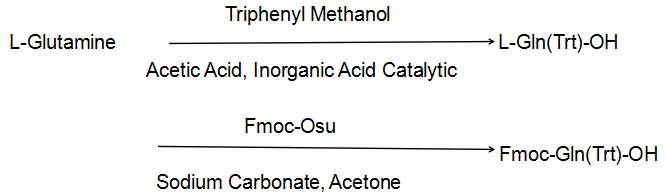 Fmoc-Gln(Trt)-OH обладает хорошей растворимостью в большинстве органических растворителей, и было показано, что его использование приводит к значительно более чистым пептидам, чем другие производные, используемые для введения Gln. Соединение может быть выполнено стандартными процедурами. Тритильная защитная группа обычно удаляется 95% ТФУ за 1–3 часа без алкилирования Trp.
