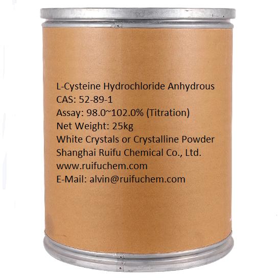 Shanghai Ruifu Chemical Co., Ltd. является ведущим производителем и поставщиком безводного L-цистеина гидрохлорида (CAS: 52-89-1) высокого качества, производственная мощность 3000 тонн в год. Ruifu Chemical поставляет ряд производных аминокислот. Как опытный производитель и поставщик безводного L - цистеина гидрохлорида, мы занимаемся поставкой и экспортом безводного L - цистеина гидрохлорида уже почти 10 лет, будьте уверены, что покупаете у нас. Мы можем предоставить сертификат подлинности, доставку по всему миру, доступны небольшие и оптовые партии. Если вас интересует безводный L-цистеина гидрохлорид, Пожалуйста, свяжитесь с: alvin@ruifuchem.com
