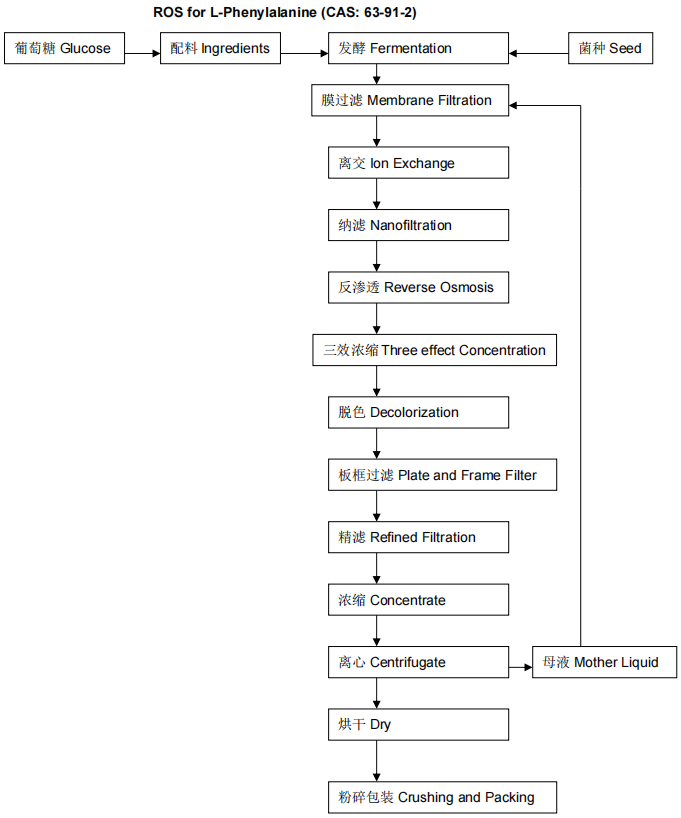 L-Фенилаланин (H-Phe-OH) (CAS: 63-91-2) является незаменимой аминокислотой и единственной формой фенилаланина, обнаруженной в белках. Это одна из 18 распространенных аминокислот и одна из восьми незаменимых аминокислот в организме человека. L - Фенилаланин производится для медицинских, кормовых и пищевых целей, например, для приготовления аспартама. В качестве пищевой добавки L-фенилаланин можно рассматривать как бензильную группу, замещающую метильную группу аланина, или фенильную группу вместо концевого водорода аланина. Большинство в организме путем окисления катализом фенилаланингидроксилазы в тирозин и синтетические с тирозином важные нейротрансмиттеры и гормоны, участвующие в метаболизме сахара и жиров в организме. L-Фенилаланин — биоактивная ароматическая аминокислота. Это необходимая аминокислота, которая не может быть синтезирована человеком и животными самостоятельно. Человеку необходимо потреблять 2,2 г L-фенилаланина каждый день. L-фенилаланин широко используется в фармацевтической промышленности и производстве пищевых добавок. Это важный ингредиент для инъекций аминокислот. В пищевой промышленности L-фенилаланин можно добавлять в хлебобулочные изделия. А питание фенилаланина можно усилить и за счет амидо-карбоксилирования глюцидом. L-Фенилаланин может улучшить аромат продуктов и сохранить баланс необходимых аминокислот. В фармацевтической промышленности L-фенилаланин используется в качестве промежуточного продукта в некоторых аминопротивораковых фармацевтических препаратах, таких как формилмерфалан и т. д. L-фенилаланин является основным сырьем для подсластителя аспартама, одной из незаменимых аминокислот в организме человека. Он в основном используется в фармацевтической промышленности для инфузий аминокислот и аминокислотных препаратов. В пищевой промышленности в основном используется в качестве синтетического сырья для пищевого подсластителя аспартама; его также можно использовать в качестве пищевой добавки и усилителя вкуса, его применяют при производстве продуктов питания и напитков, например, в хлебобулочных изделиях.