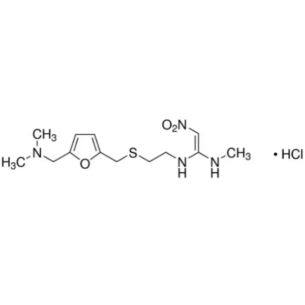 N-[2-[[[5-[(Диметиламино)метил]-2-фуранил]метил]тио]этил]-N¢-метил-2-нитро-1,1-этендиамин, гидрохлорид [66357-59-3].